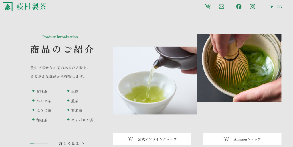 もう一つのウェブサイトリニューアルの目的は、自社製品の認知度アップです。そして、抹茶を中心とした日本茶文化の魅力を広く国内外へ伝えるサイト構築です。